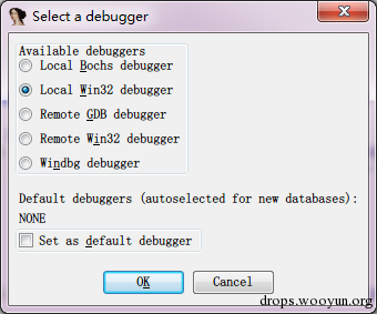 IDA的动态调试功能支持bochs、win32 debugger、gdb、windbg: