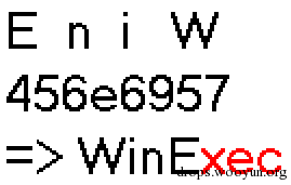 #!bash image00400000+0x502c: 0040502c 8b34af mov esi,dword ptr [edi+ebp*4] 0040502f 01c6 add esi,eax 00405031 45 inc ebp 00405032 813e57696e45 cmp dword ptr [esi],456E6957h 00405038 75f2 jne image00400000+0x502c (0040502c)