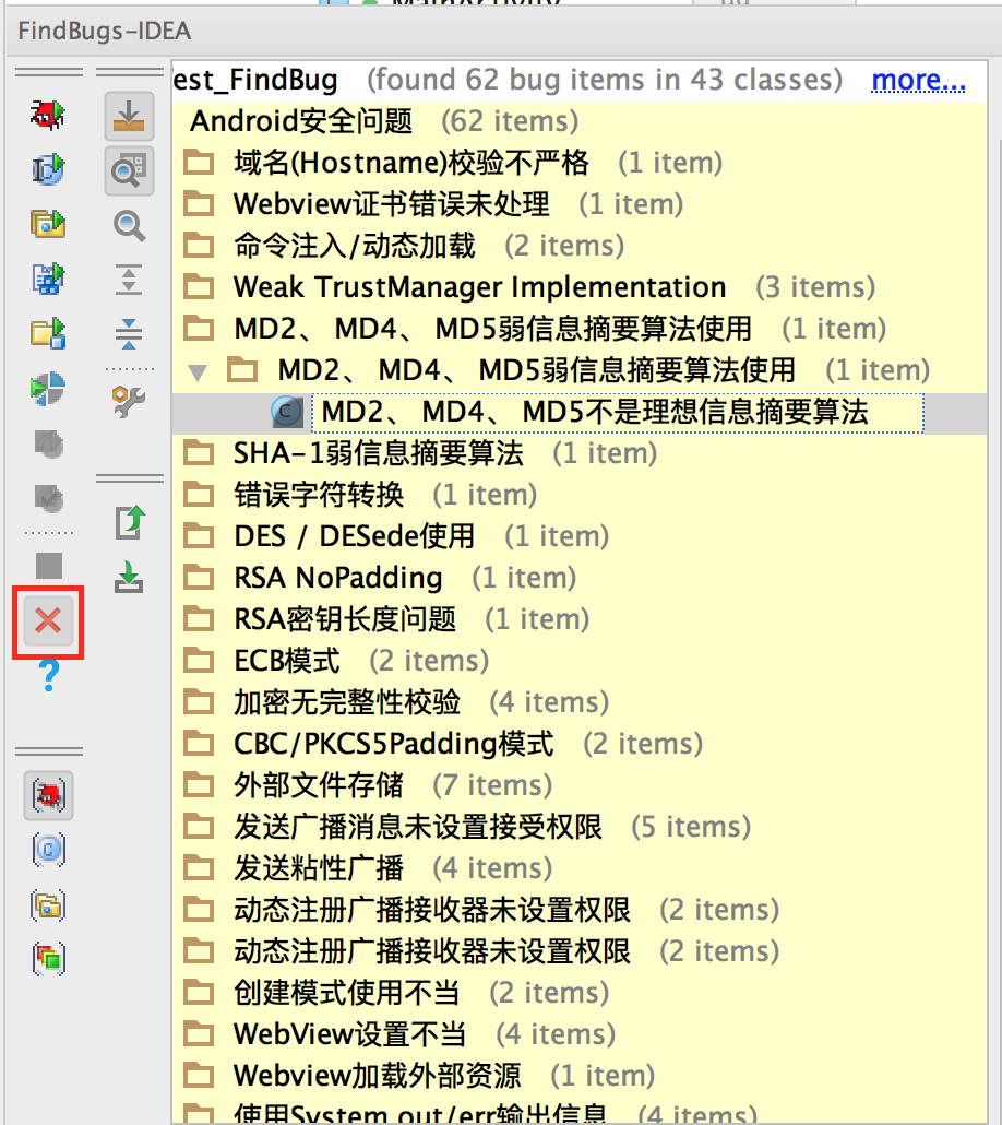 由于Findbugs本身包含一些代码质量的分析,有时会对查看分析结果造成干扰,此时可以设置检测条目,只保留Android安全问题的展示,设置方法如下: