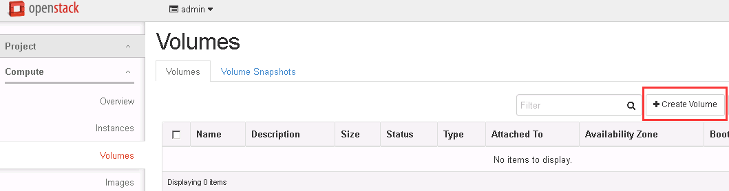 GUI 上操作的菜单为 Project -> Compute -> Volumes -> Create Volume