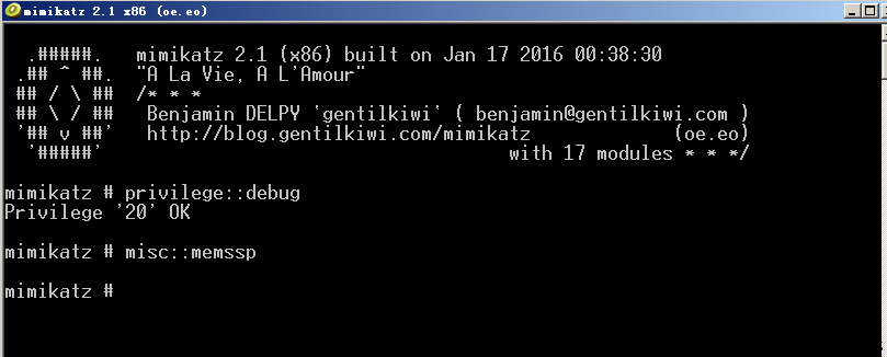 注:64位系统要用64位的mimilib.dll,32位的会失败