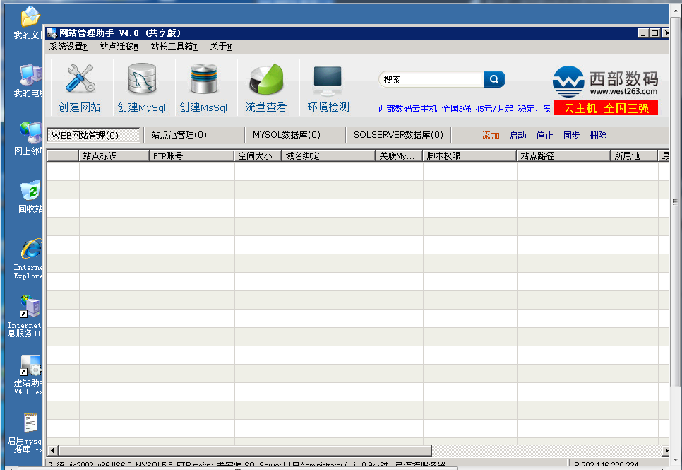 然后我们打开桌面上的“建站助手”,打开后的界面如下图所示: