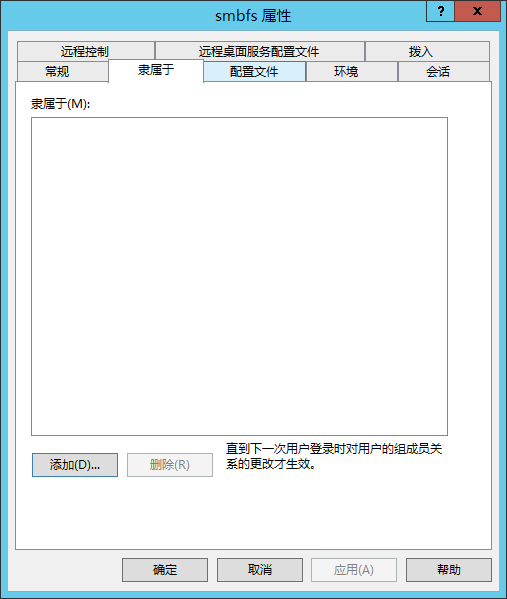 1)增加名称为smbfs的用户(windows的东西无师自通,增加用户不详述)