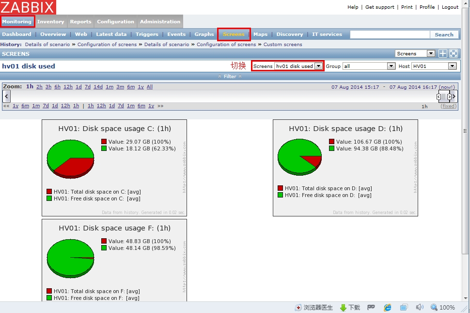 将多种信息放在一起展示,便于集中展示某个host的多个信息,或是比较多个hosts的同一种信息,这些信息可以是graphs、maps、server infos等等,几乎涵盖zabbix所有的监控信息。