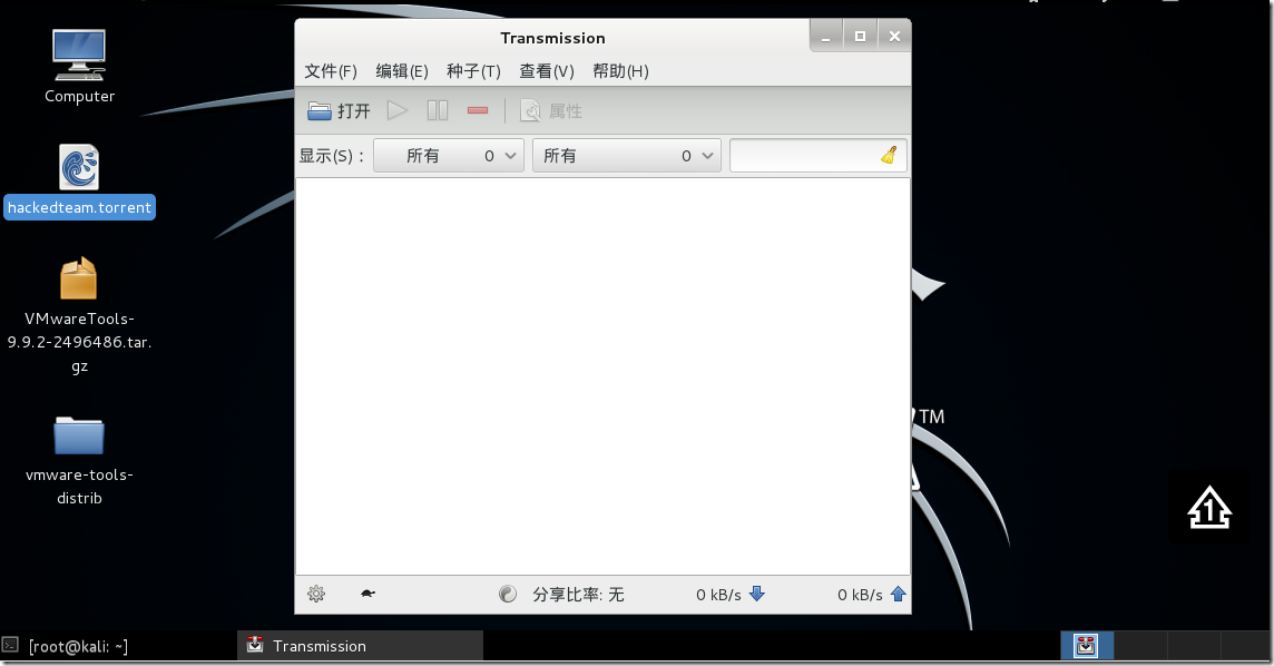 相信不少朋友都在各种渠道中下载了HackingTeam的种子(感谢大奔哥在百忙之中给我发了种子并告知了我此事),或许还有一部分朋友下载了种子却没有下载文件,因为种子很大,有23M.windows下的BT工具大部分都解析不了,一加载解析就会崩.我尝试过迅雷各版本, BitComet,比特精灵,emule…无一例外都在解析种子的时候下载器崩溃了.在定长君的提示下最终在Linux系统下把文件下载完了.想起之前在windows下无法下载的时候也百度过资料,发现网上还没有分享下载的方法和完整资源的云盘共享,所以厚着脸皮写篇日志班门弄斧,从安装Kali到资源下载完成,大神们勿笑.