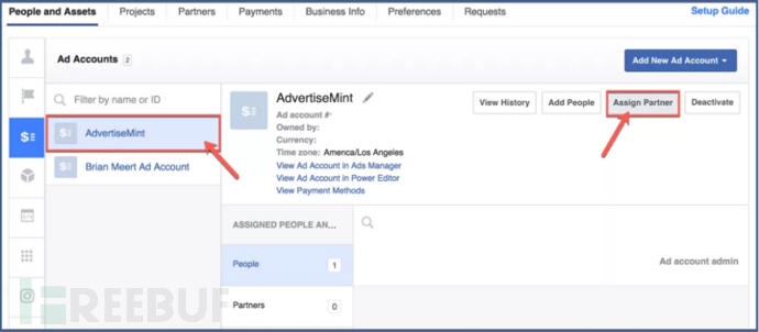 他用目标Facebook账号的ID值替换了请求数据中“asset_id”参数值,然后交换了“parent_business_id”和“agency_id”的值。除此之外,他还将“role”参数的值修改成了“MANAGER”。