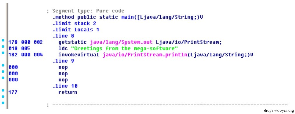 不用说了,它工作在JRE1.6 我也尝试替换所有3ifeq操作吗bytes,使用0字节(NOP),它仍然会工作,好 可能没有更多的堆栈映射在JRE1.7中被检查出来。